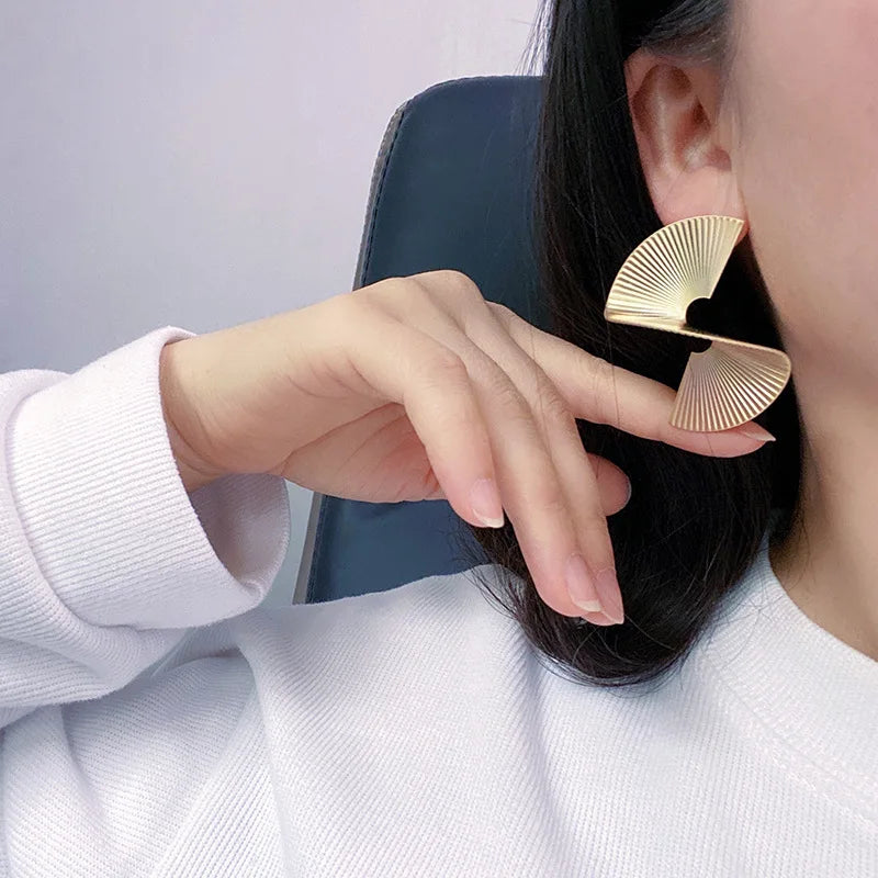 Dramatic C-shaped dangle earrings featuring bold twisted spirals in luxe gold-tone zinc alloy. These eye-catching statement pieces blend 70s retro flair with contemporary edge, perfect for weddings, parties, or elevating everyday looks.